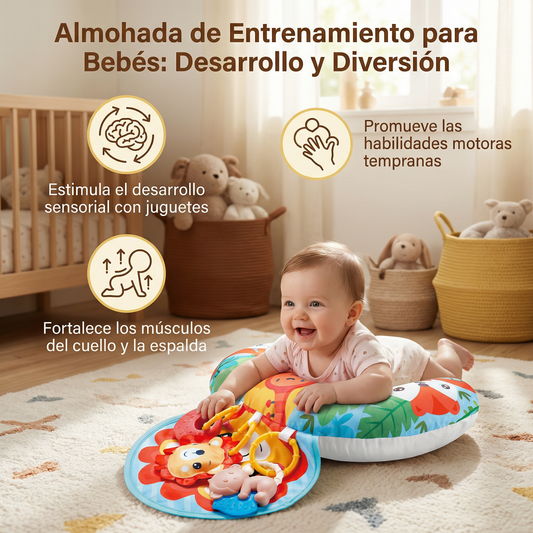 Almohada de Entrenamiento para Bebés para el Tiempo Boca Abajo con Arco de Juego – Apoya el Desarrollo Sensorial y el Crecimiento Temprano