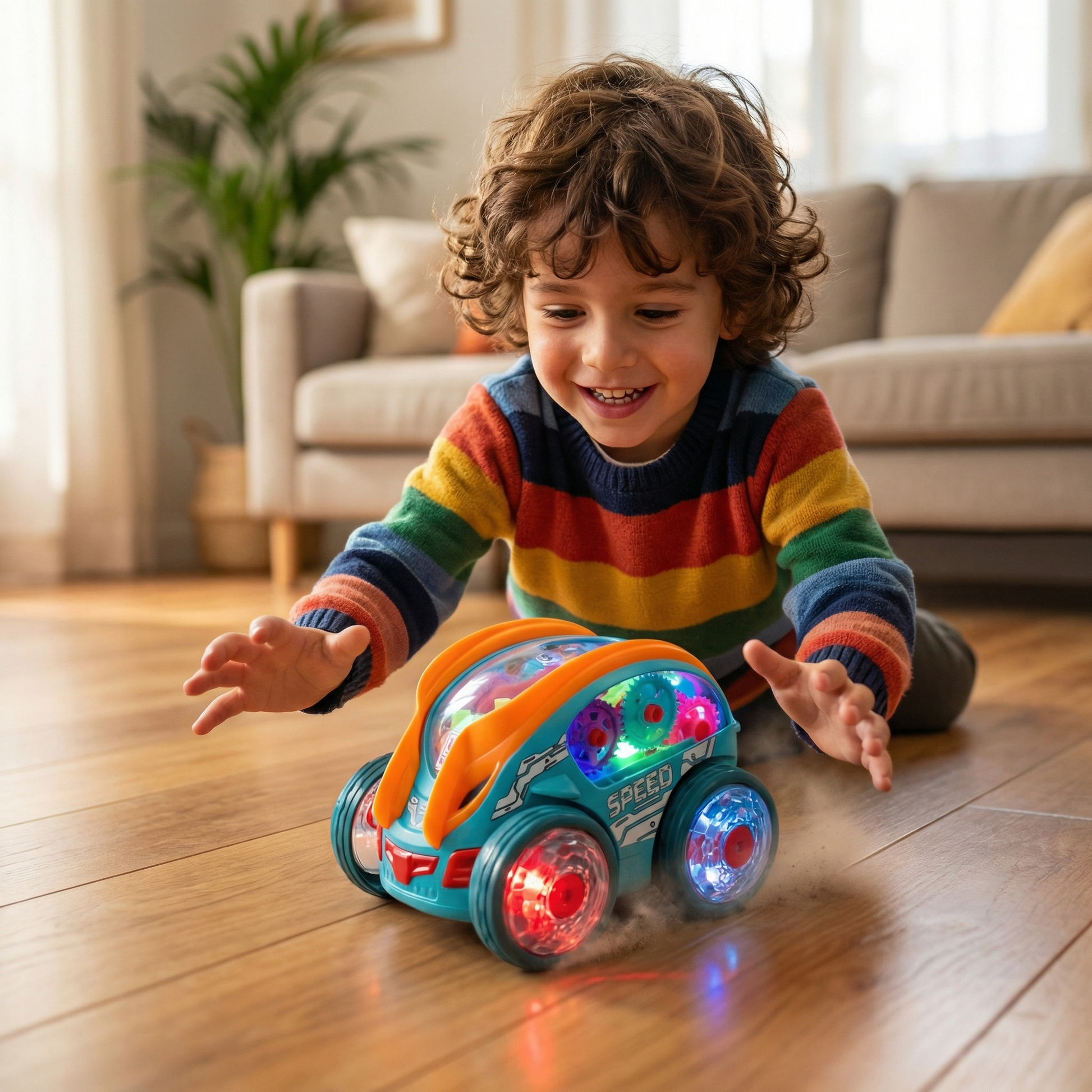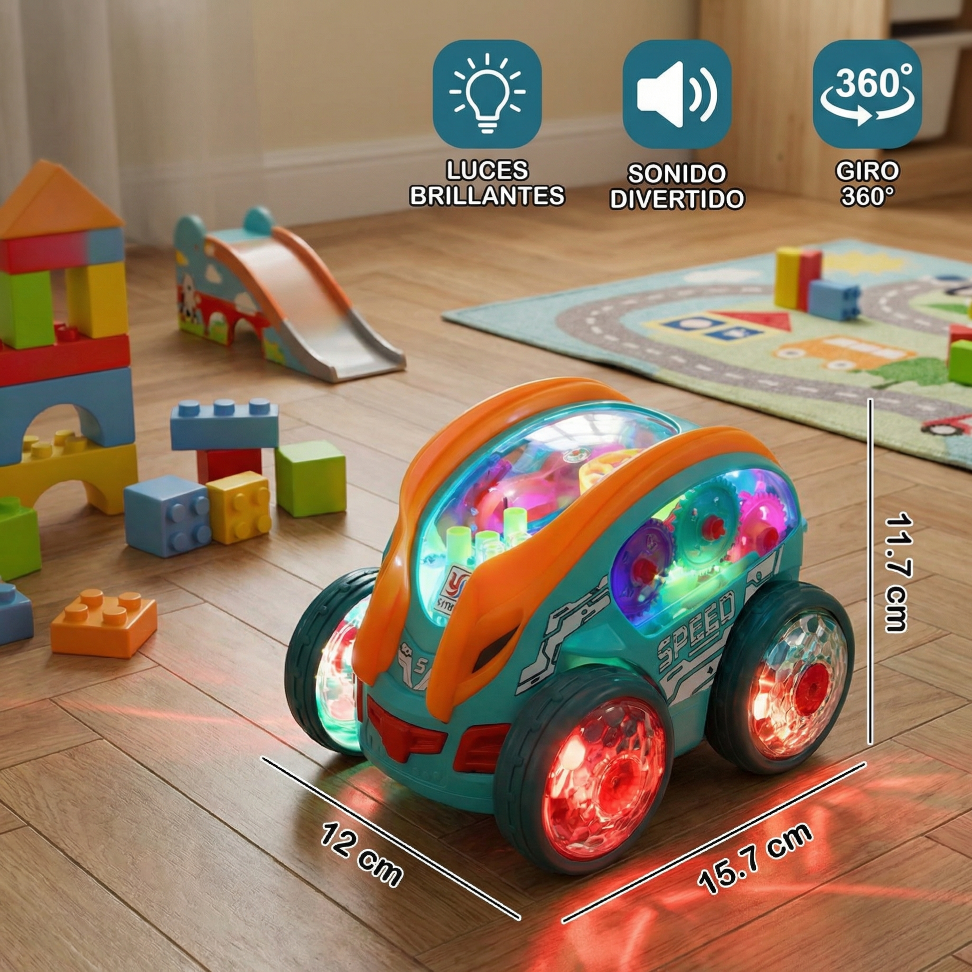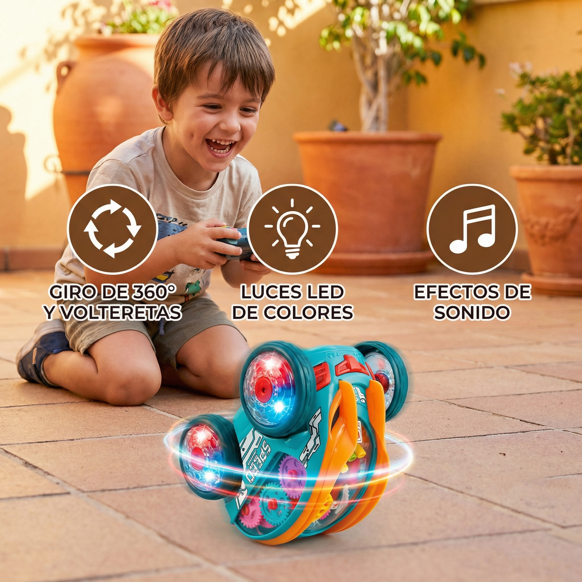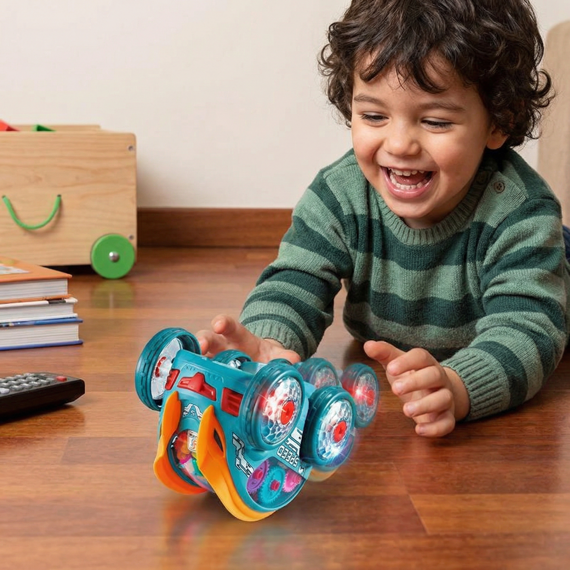 El coche acrobático luminoso hace brillar los ojos de los niños y crea momentos de juego llenos de acción. Con sus luces intermitentes, giros rápidos y espectaculares volteretas, convierte cualquier habitación en un pequeño circuito. Este juguete lleno de energía entusiasma a los niños con movimiento, color y efectos sorpresa, perfecto para estimular la imaginación y la capacidad de reacción.