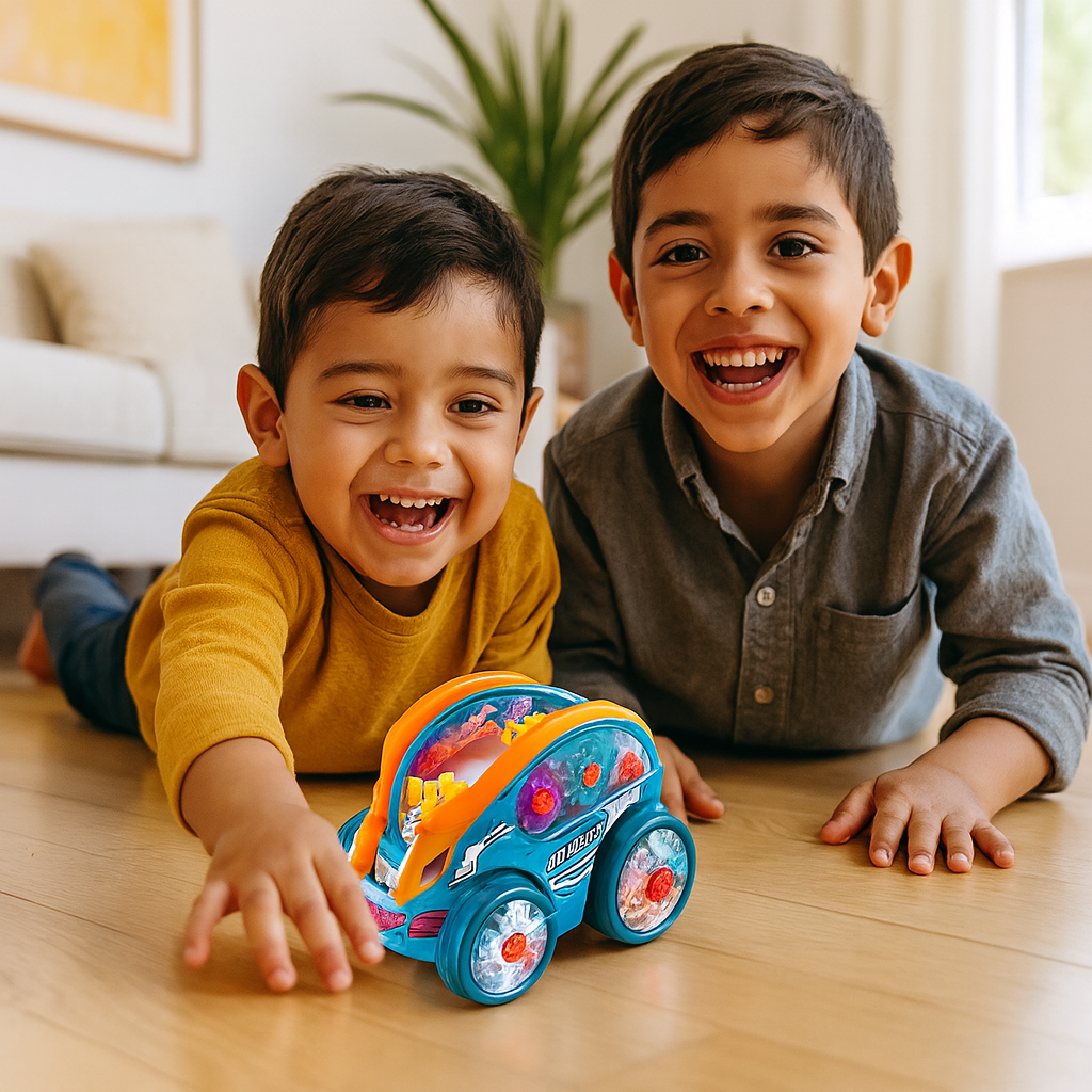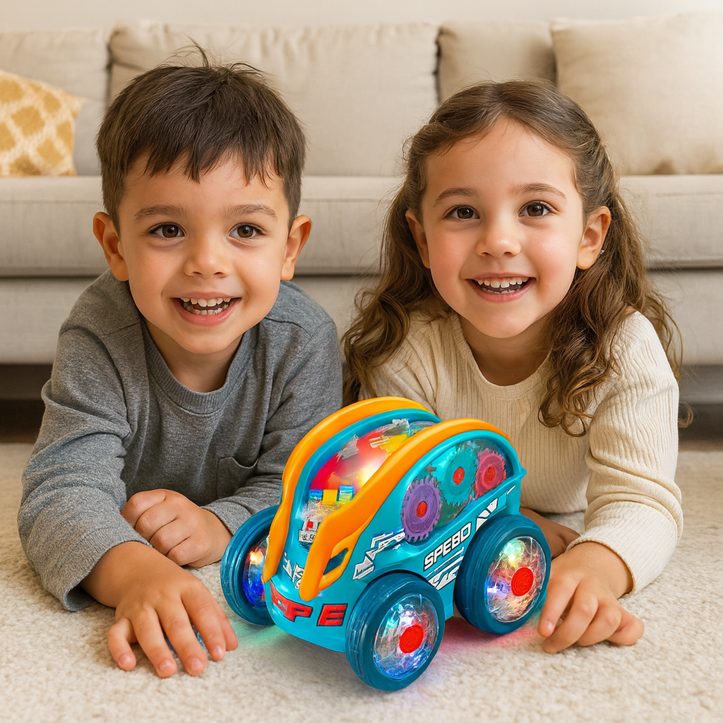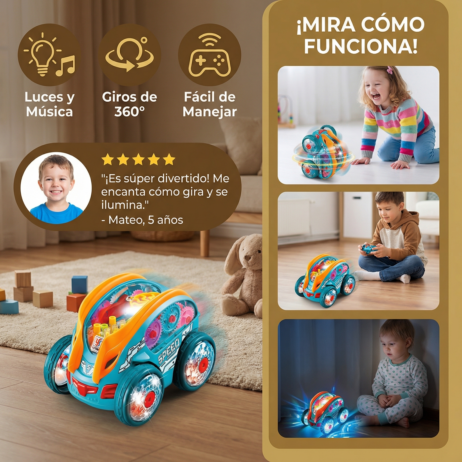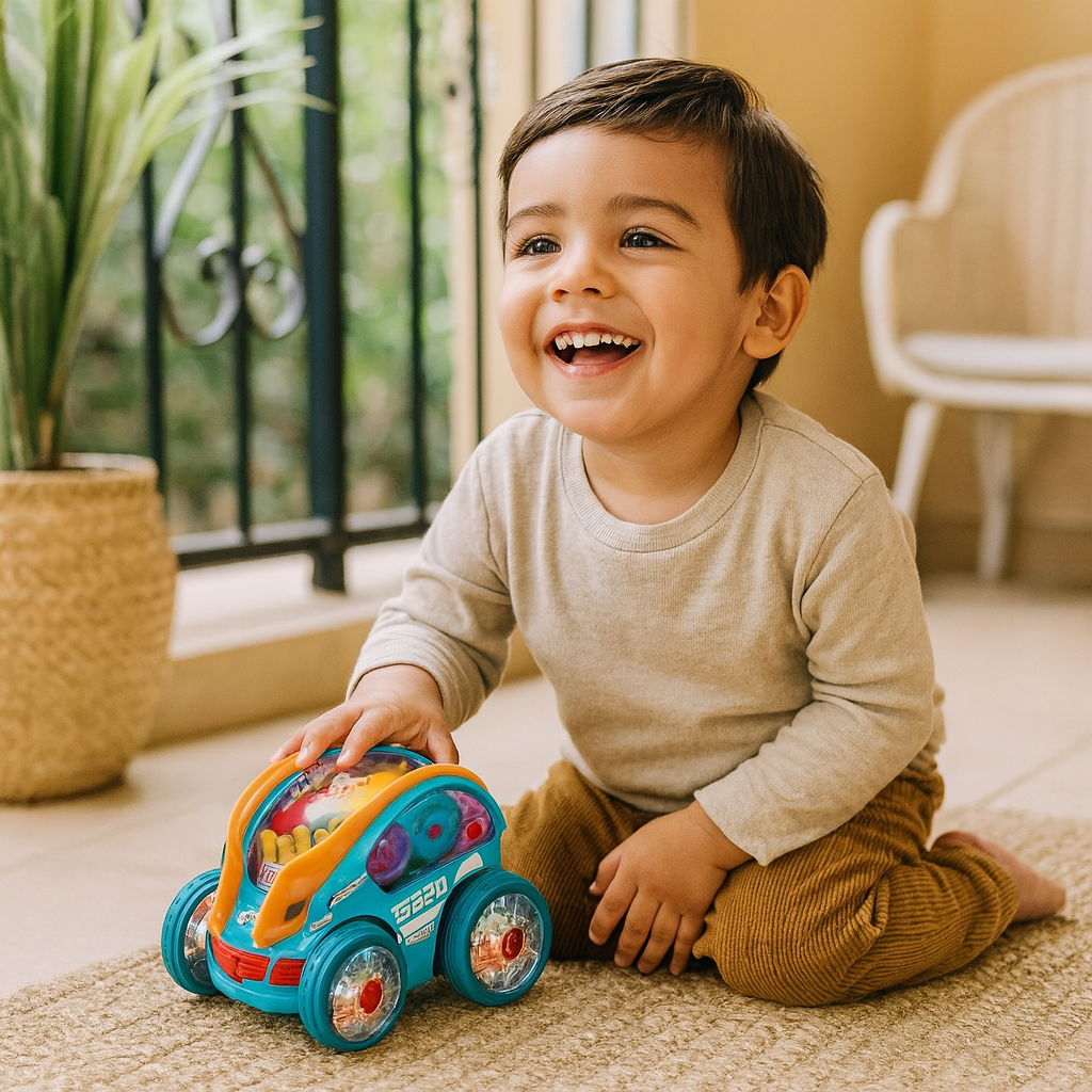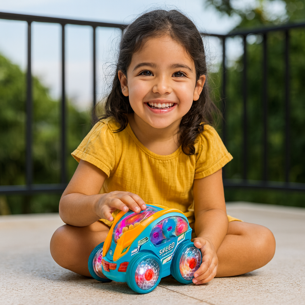 El coche acrobático luminoso hace brillar los ojos de los niños y crea momentos de juego llenos de acción. Con sus luces intermitentes, giros rápidos y espectaculares volteretas, convierte cualquier habitación en un pequeño circuito. Este juguete lleno de energía entusiasma a los niños con movimiento, color y efectos sorpresa, perfecto para estimular la imaginación y la capacidad de reacción.