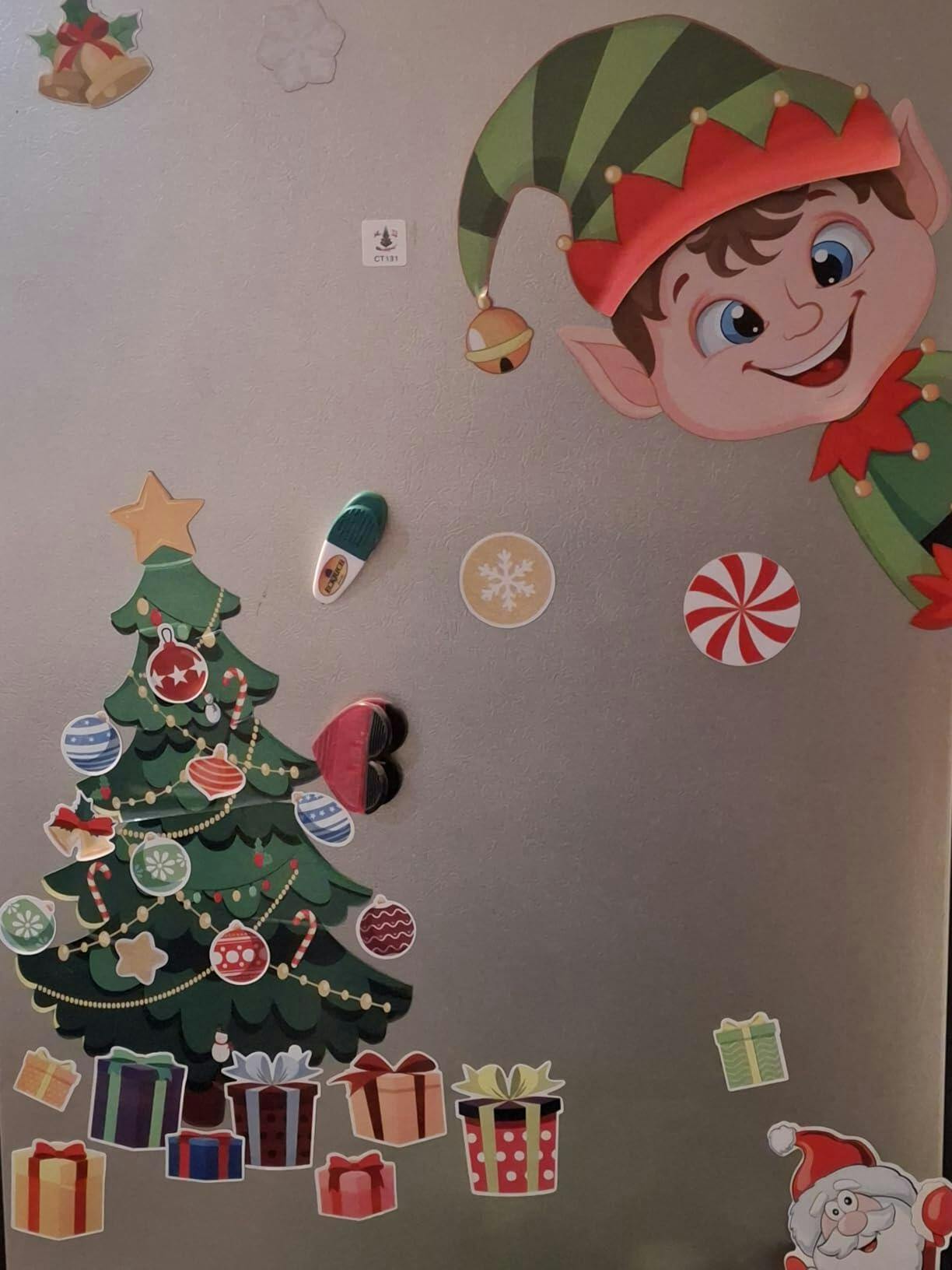 Compré este conjunto navideño para mi hija y le encantó. Se divirtió mucho decorando su propio árbol de Navidad con las pegatinas magnéticas.