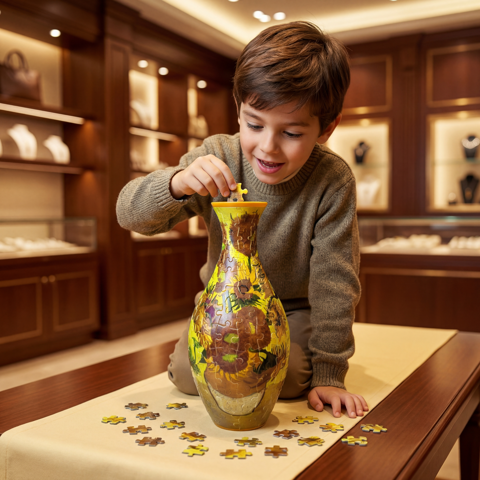 A diferencia de los rompecabezas clásicos, que se desmontan tras completarse, este jarrón permanece como un objeto de alta calidad. Así tendrás una obra de arte que podrás usar y exhibir con orgullo en tu día a día.
