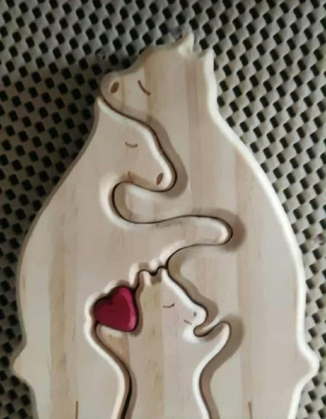 Este rompecabezas de familia de osos de madera representa el calor, la protección y la unidad que definen tu hogar. Ya sea en una estantería, en la habitación de los niños o como pieza central en el salón, es un recordatorio de que la familia es donde crece el amor. Cada detalle hecho a mano cuenta tu historia única, llena de cariño, cercanía y conexión eterna.
