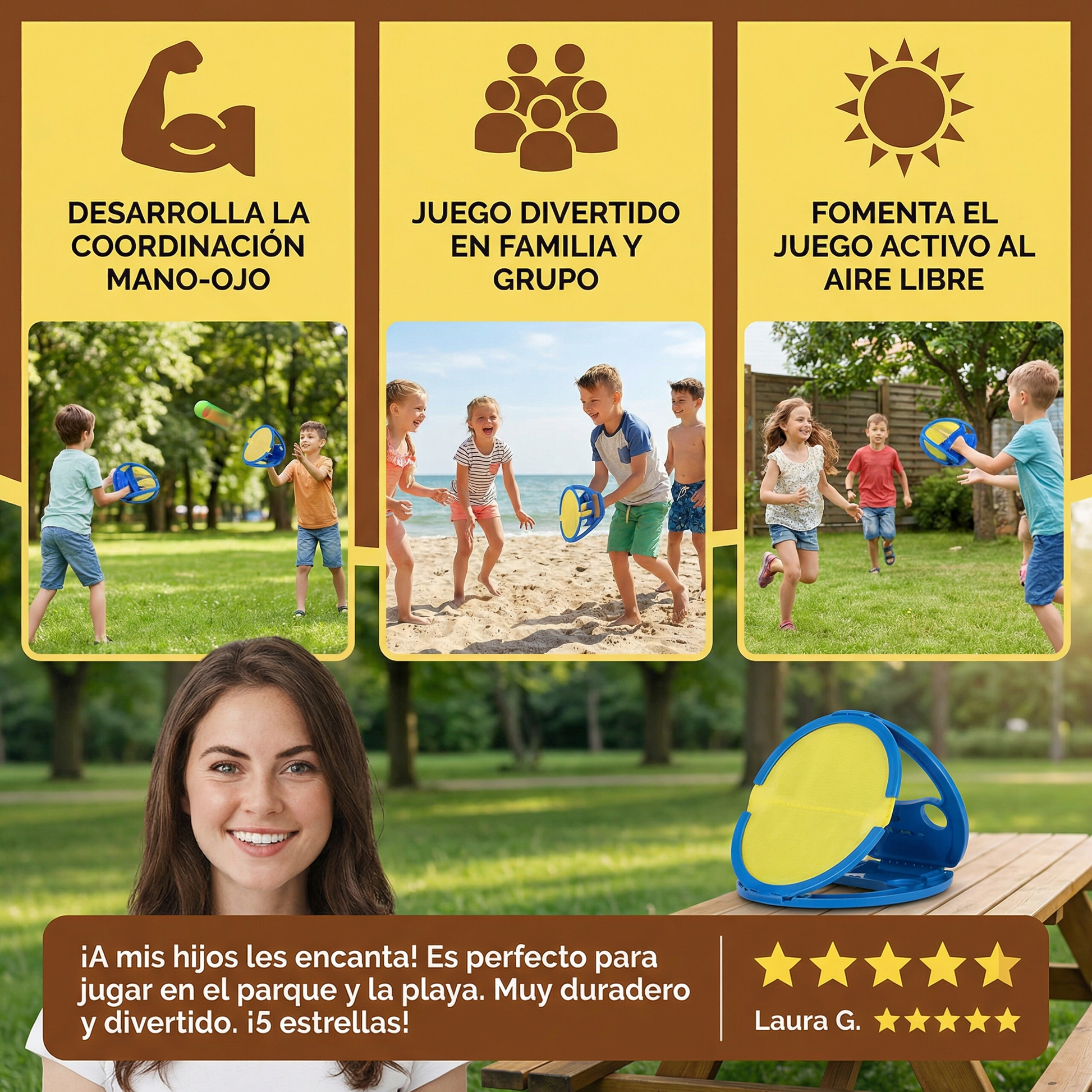 "Mis hijos adoran este juego, no paran de reír mientras intentan atrapar la pelota. Les ayuda a moverse más y jugar juntos. Es perfecto para pasar tiempo en familia al aire libre."