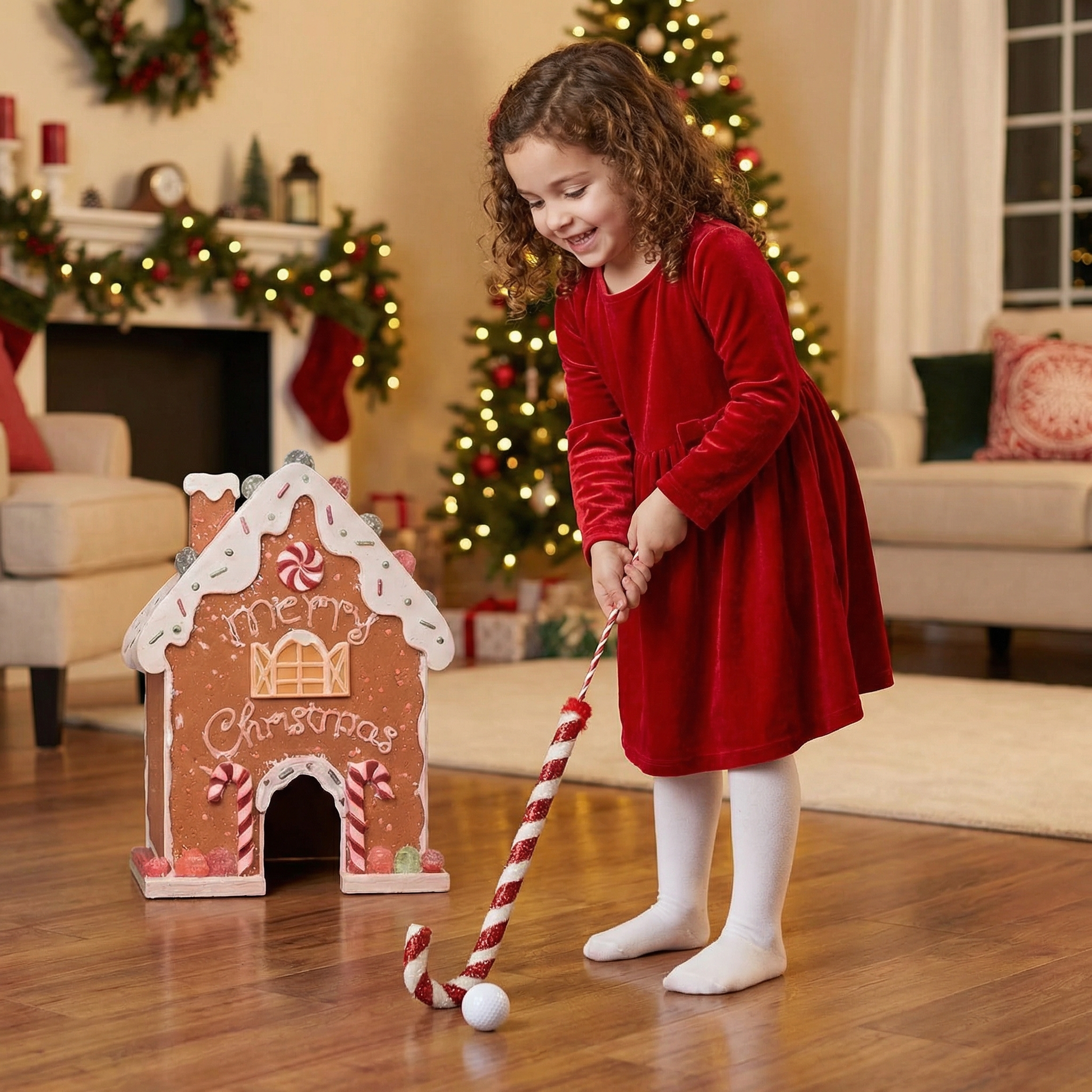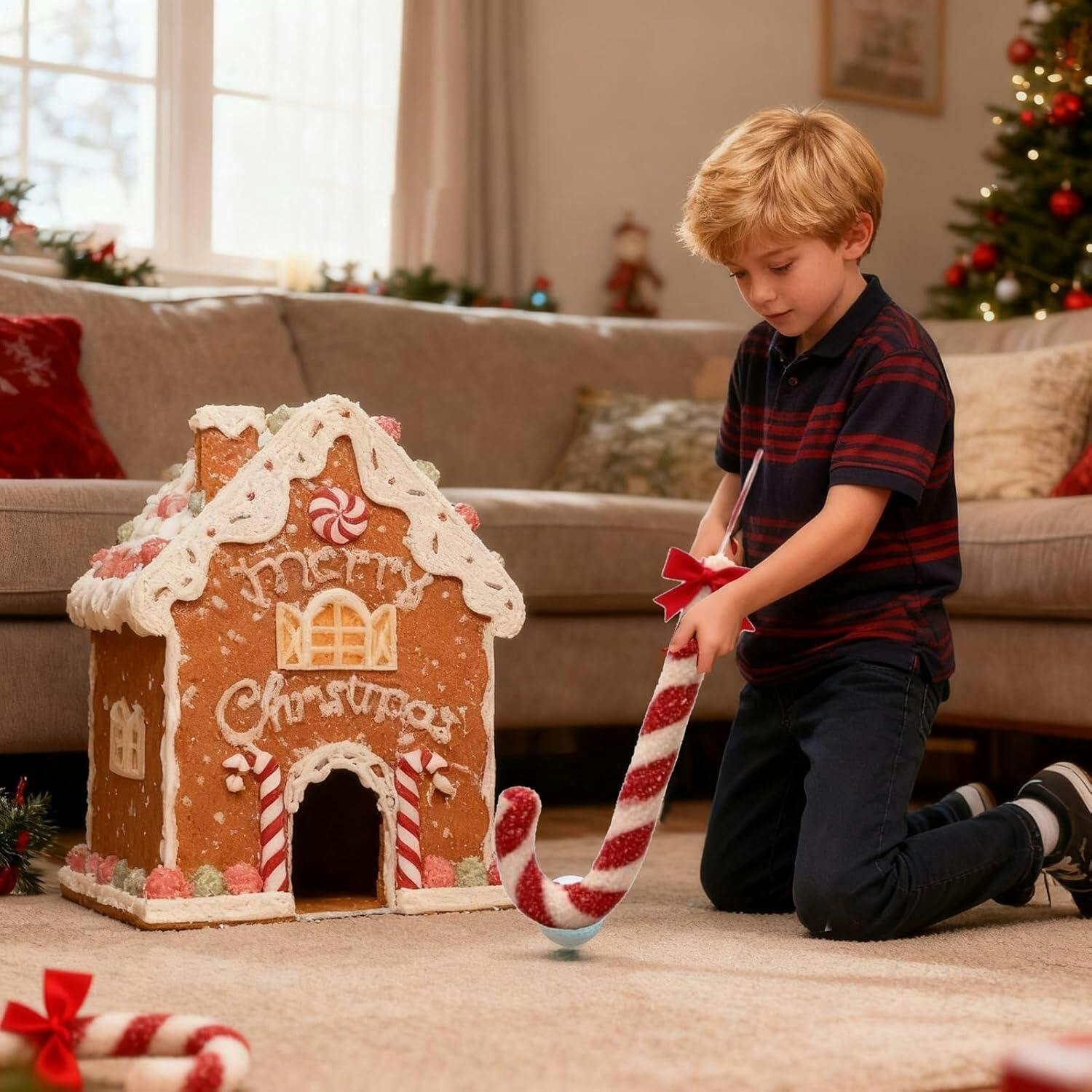 Este juguete de golf navideño transforma cualquier habitación en un divertido campo de minigolf. Aporta movimiento, risas y un toque de competencia amistosa a las fiestas, ideal para las noches familiares o las celebraciones en la oficina.