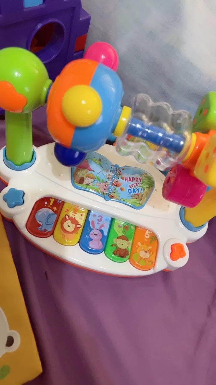 "El juguete musical 5 en 1 encanta a mi bebé con sus colores vivos y divertidos sonidos. Lo que más me gusta es que al mismo tiempo fomenta la motricidad y mantiene a mi hijo ocupado de manera constructiva por mucho tiempo."
