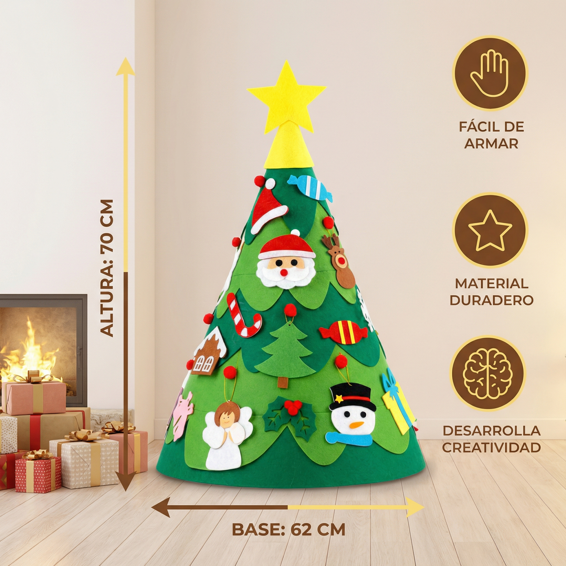 - 🎄 Materiales simples y seguros: Hecho de fieltro suave y de alta calidad – 100% seguro para los niños.