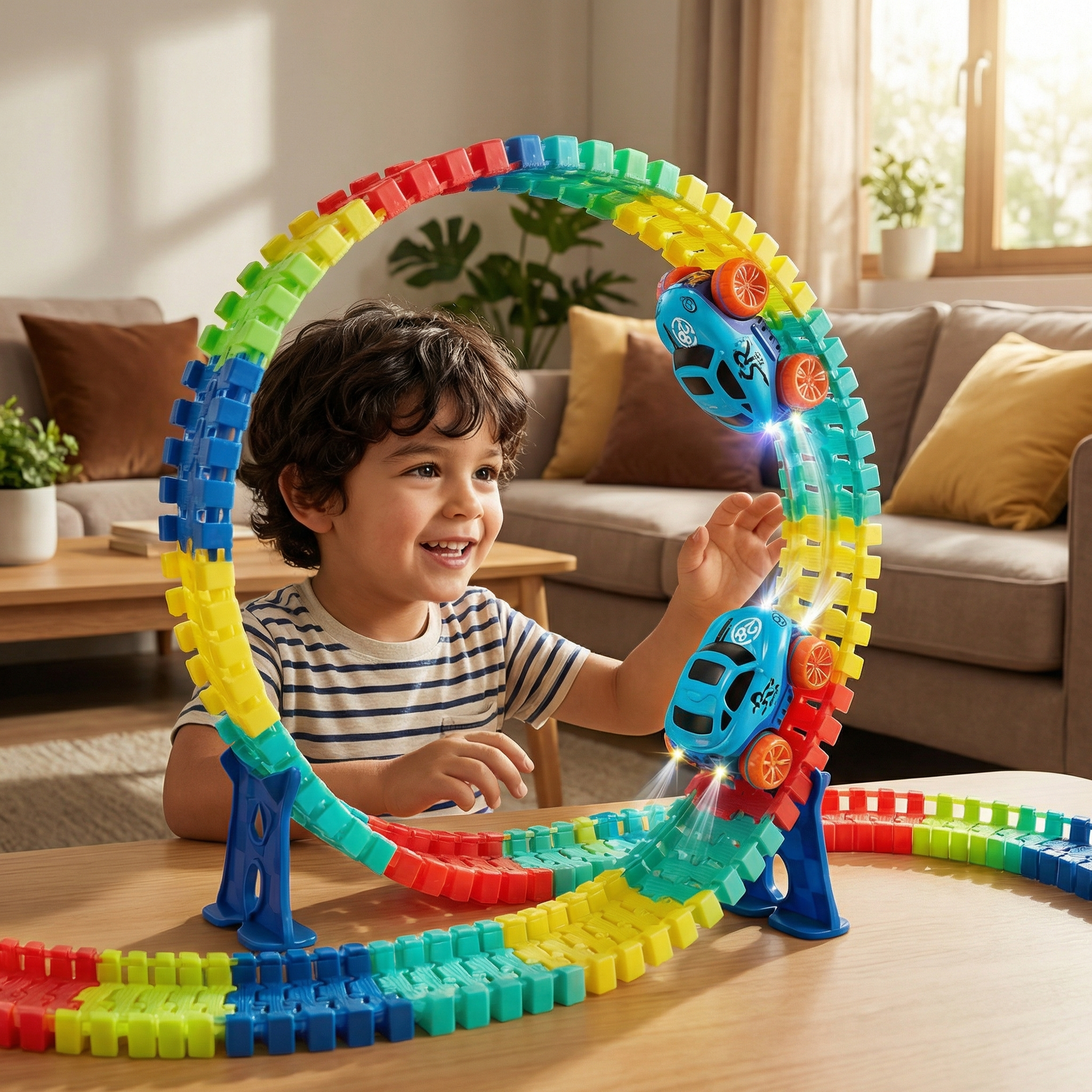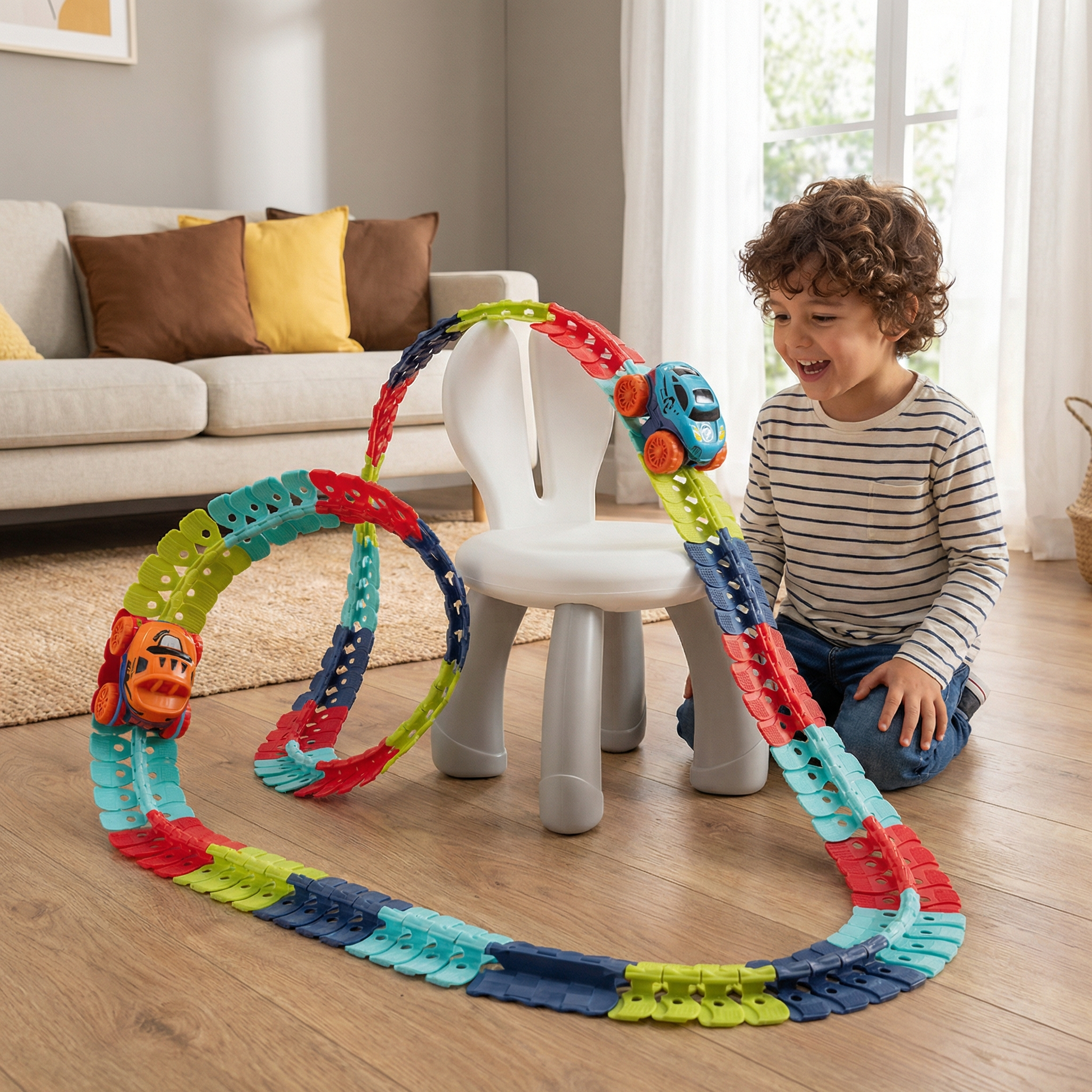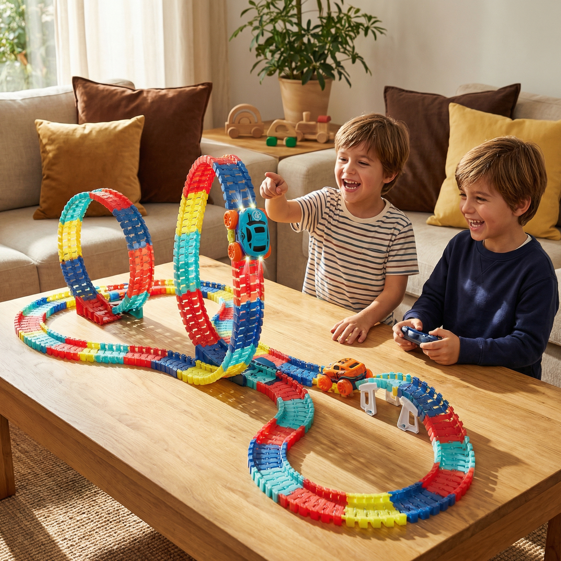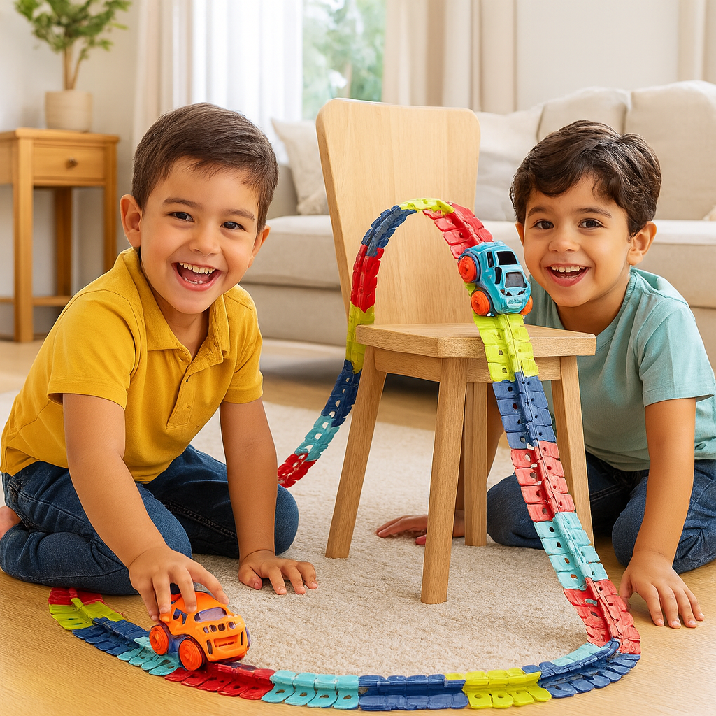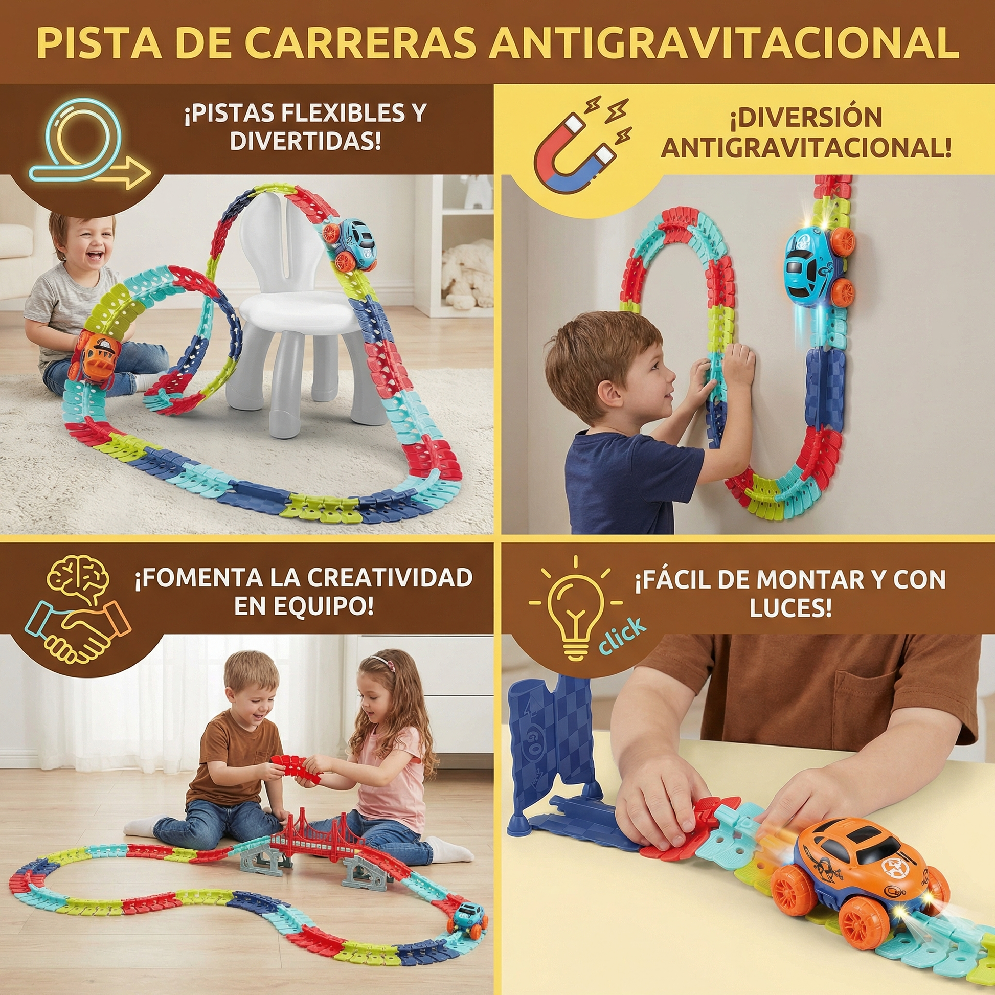 La pista de carreras antigravitacional ha sido un éxito en casa. Mis hijos pasan horas jugando sin aburrirse.