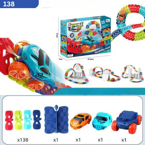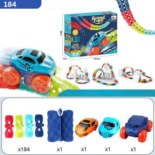 - 🌈 Construcción creativa de la pista Los elementos flexibles se pueden doblar y combinar libremente para crear rutas y formas únicas.