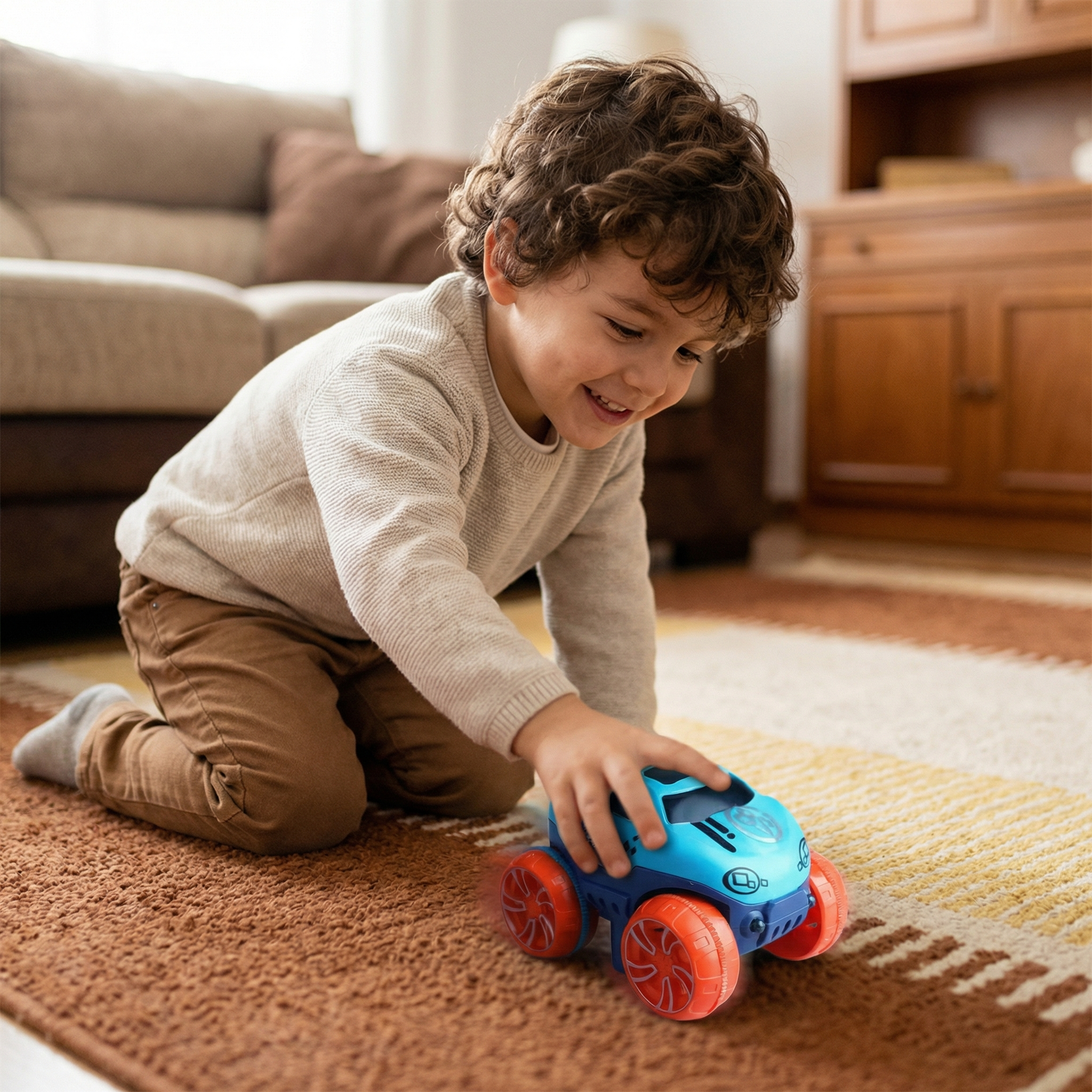 - 🚗 Funciona en cualquier superficie El coche se mueve por las paredes, debajo de la mesa y en las curvas sin detenerse.