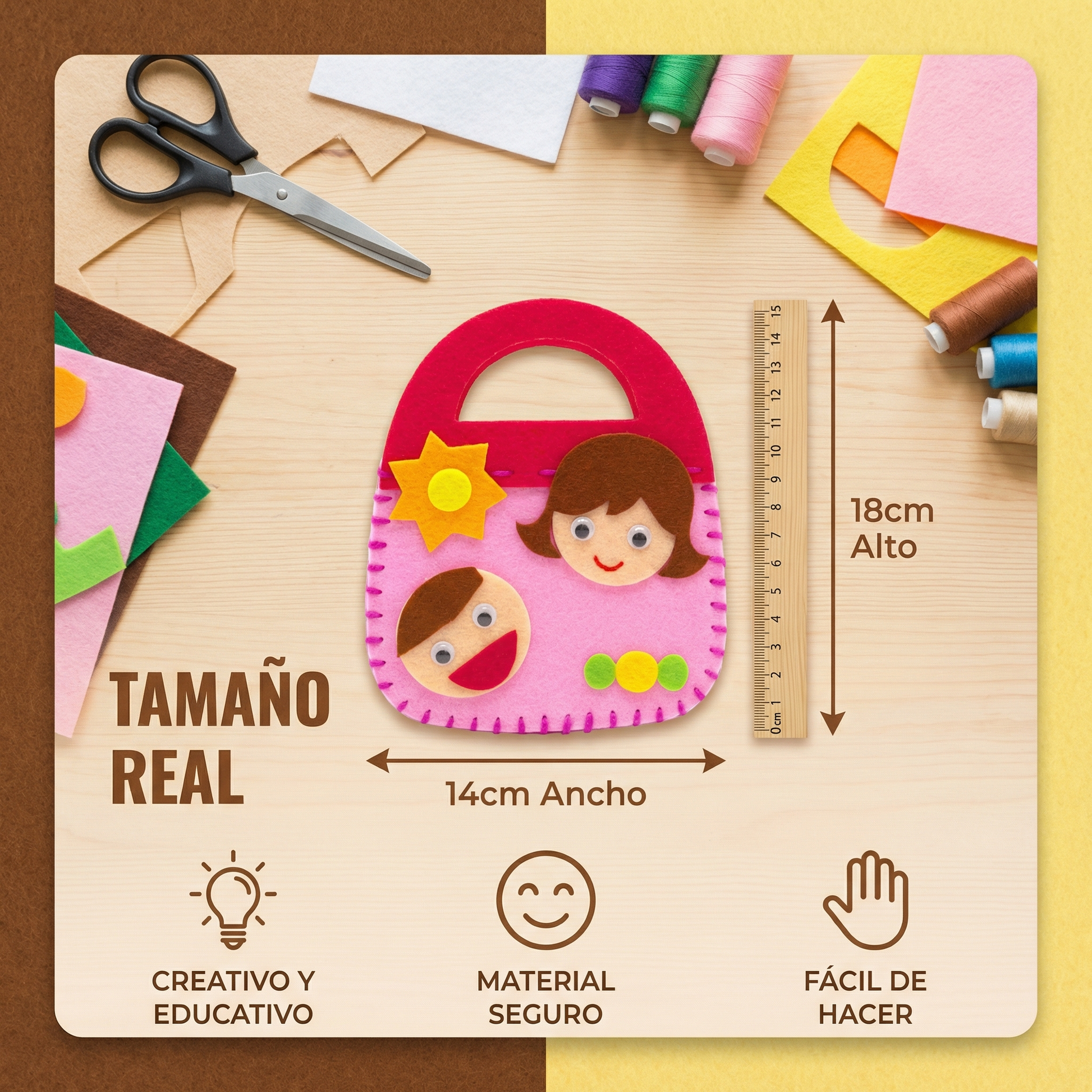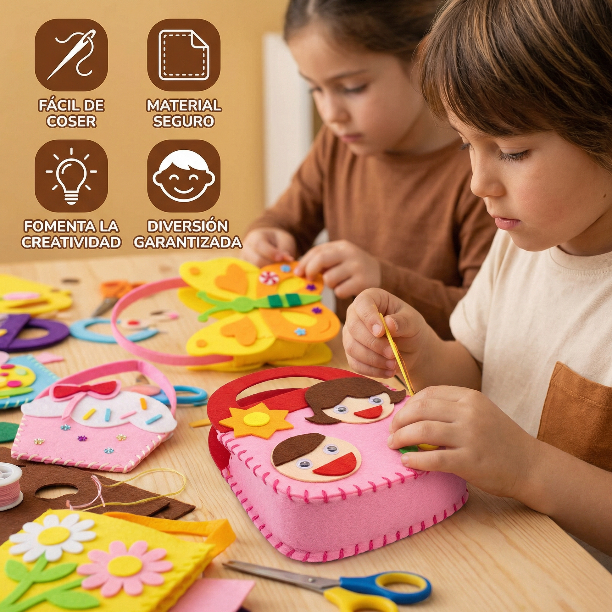 El set ofrece a los niños la oportunidad de desarrollar habilidades manuales mientras se divierten creando. Cada bolsita terminada es una pieza única que se puede mostrar con orgullo o regalar.