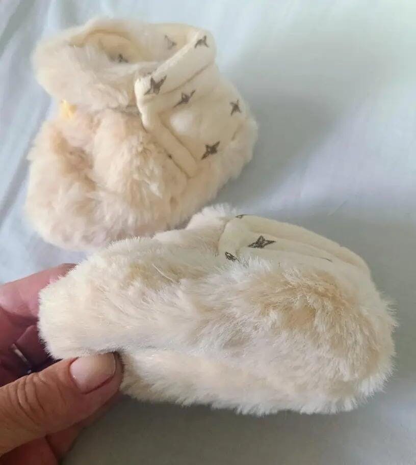 El material es de excelente calidad y muy cálido. Ideal para mantener los pies del bebé abrigados en invierno.